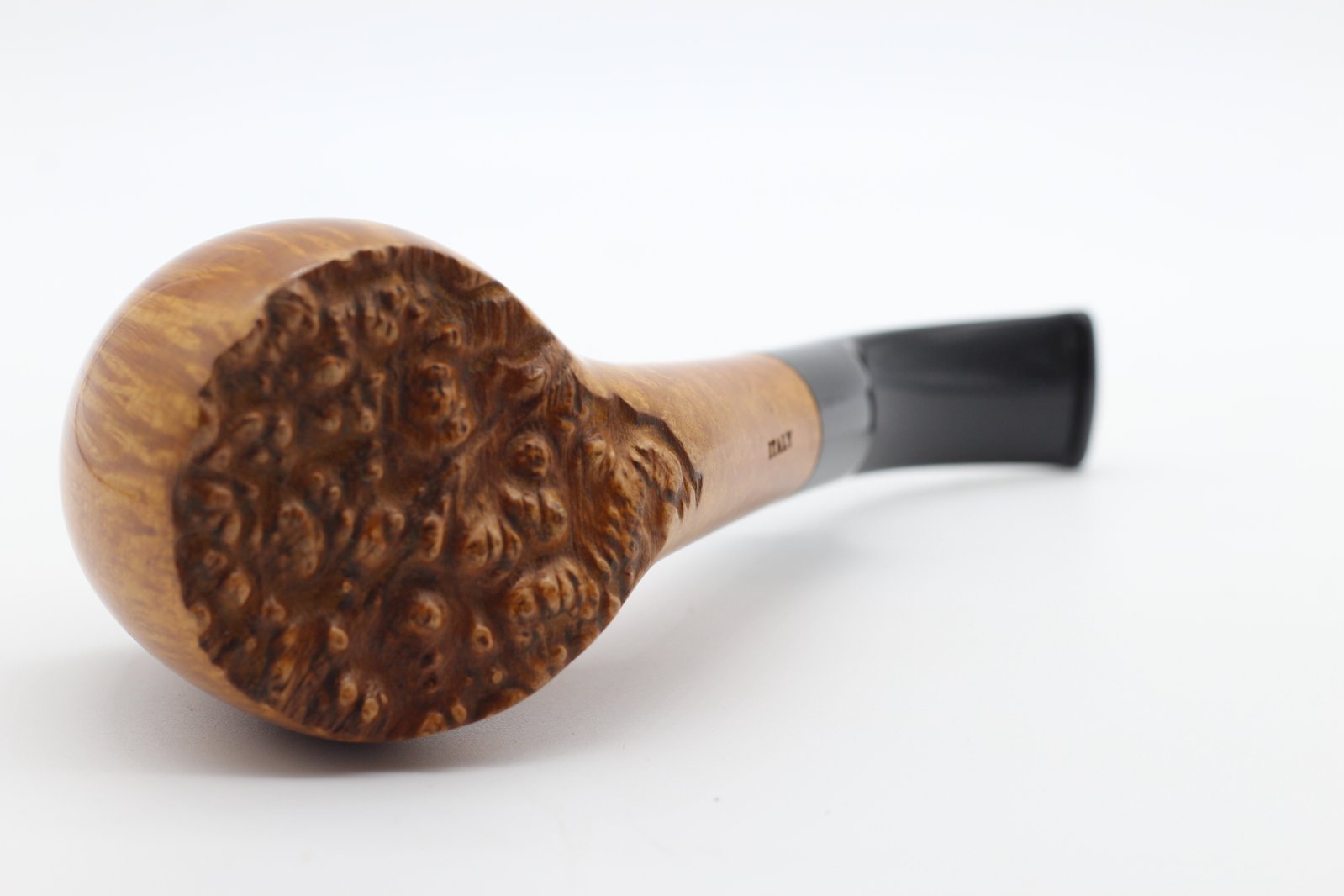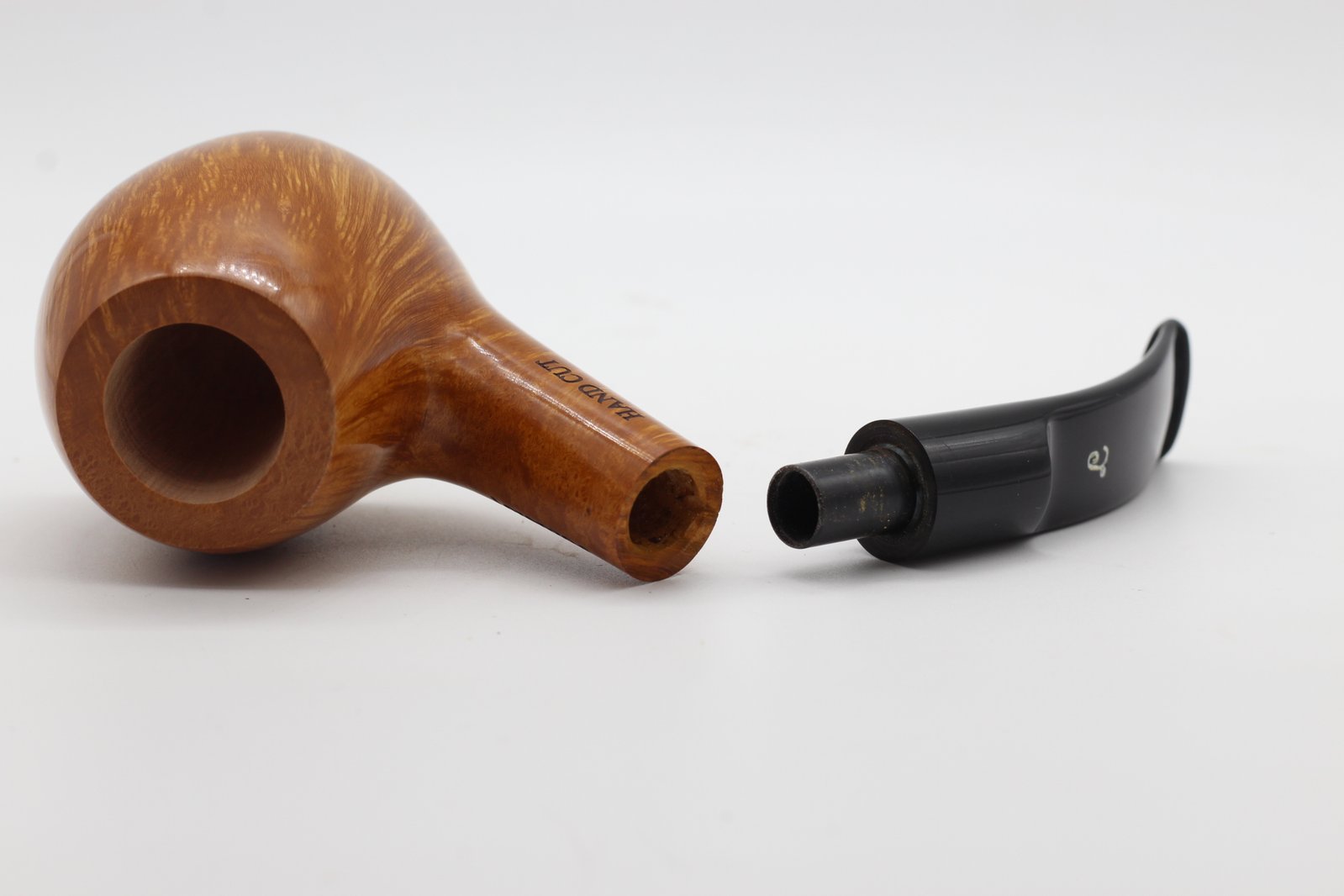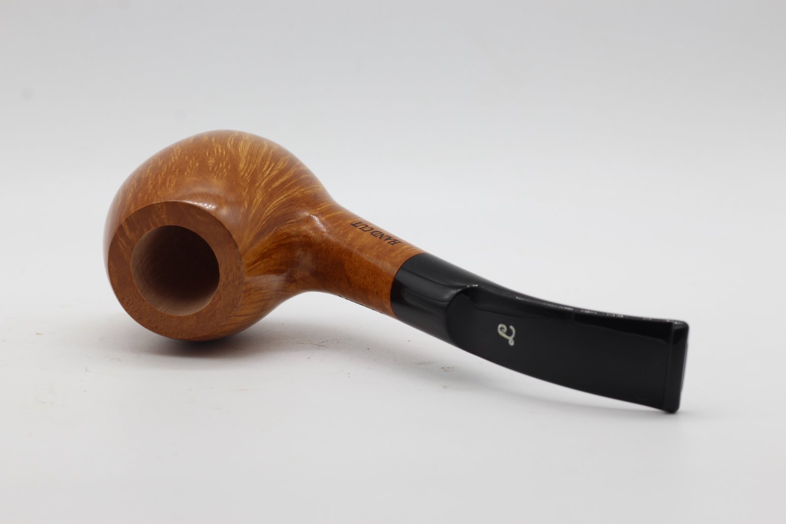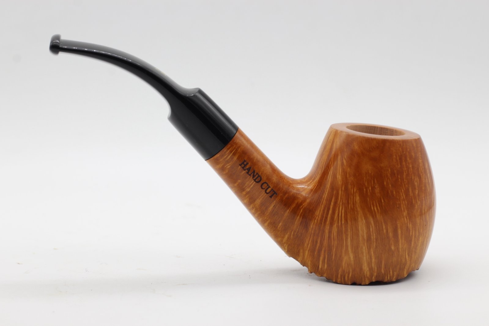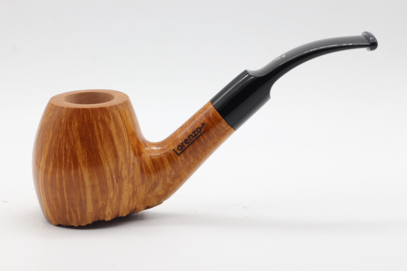 A Lorezo Hand Cut Nature pipa kiváló minőségű bruyere gyökérből kézzel készített, natur világosbarna színű, polírozott pipafej, enyhén hajlított szárral, 9mm-es filteres, fekete akril-szopókával. A pipafej alsó része az eredeti bruyere gyökér felszíne.