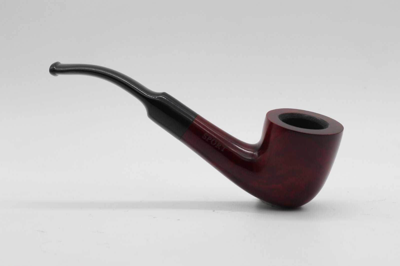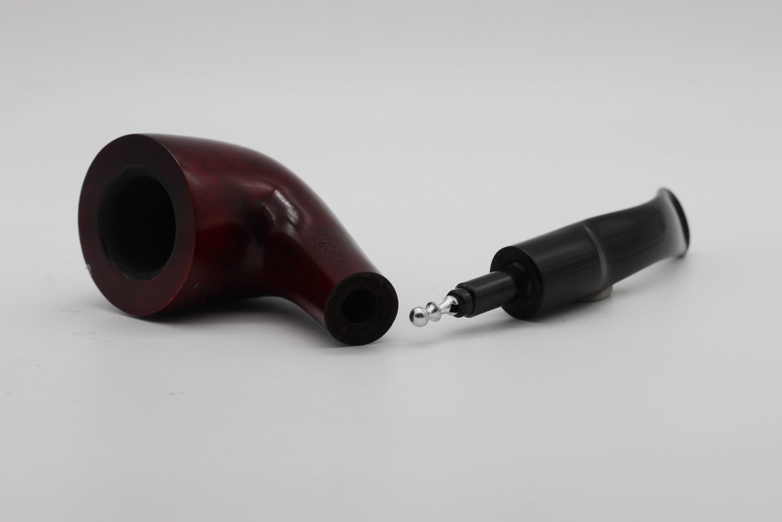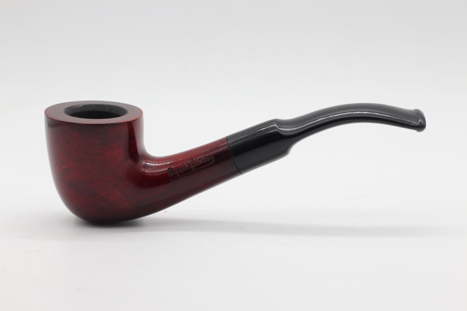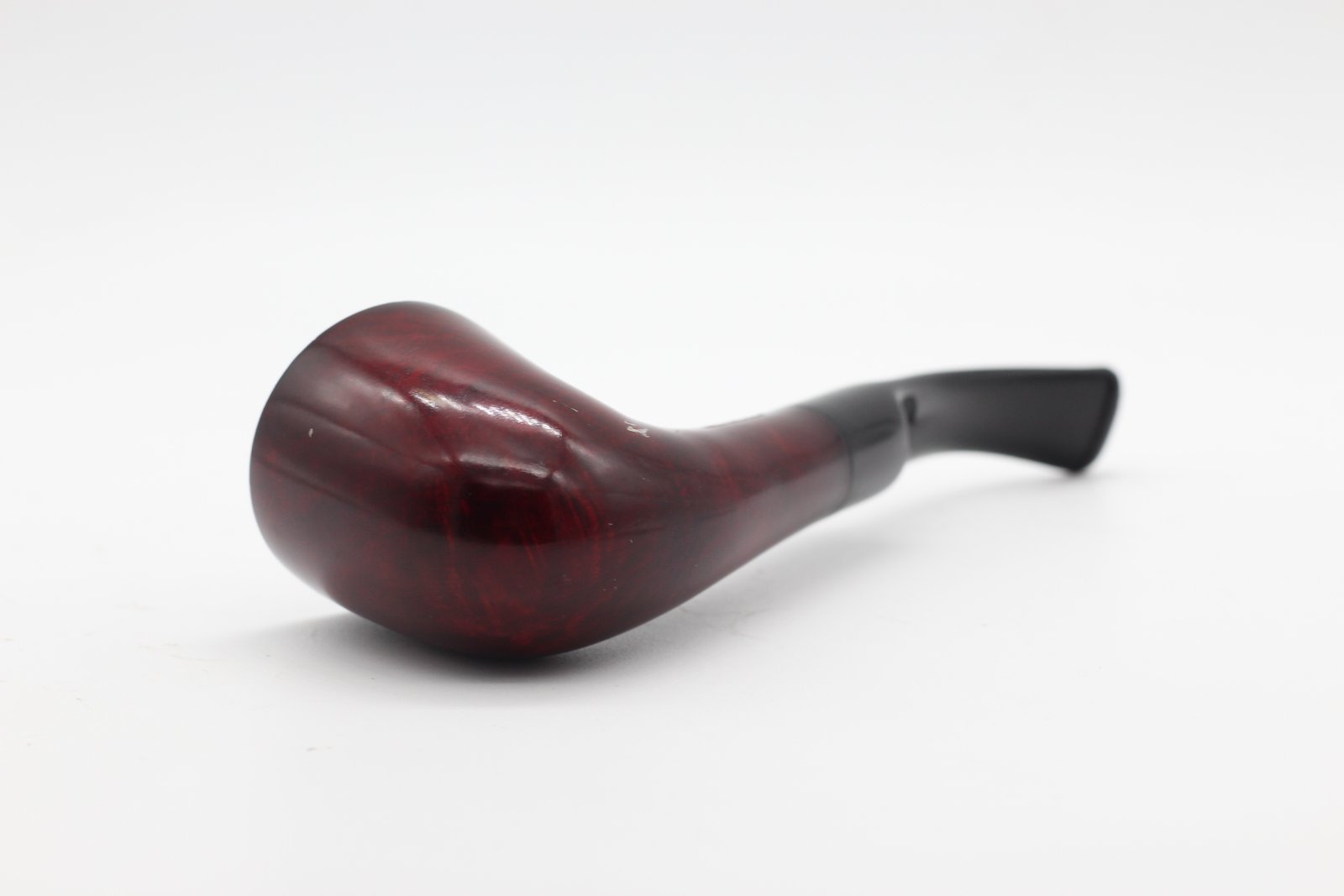 A Lorenzo Spitfire Sport 243 Red Polish pipa bruyere gyökérből készült fényes, bordó színű pipafej, filter nélküli, fekete akril szopókával.