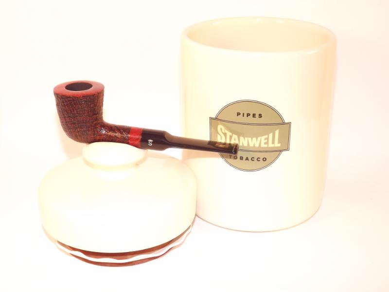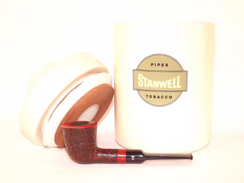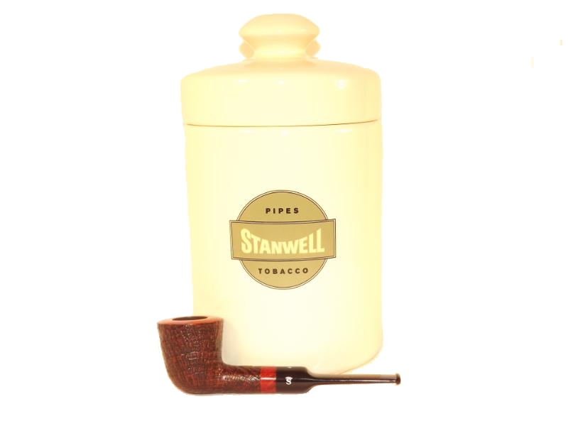 A Stanwell Classic Red Sand pipához tartozik egy stílusos dohánytartó kerámia edény, melynek fedele aromatartó gumírozással és nedvesítő szivaccsal biztosítja a dohány frissességét. A dohánytartót egy Stanwell logó díszíti, a fedelét pedig pipatartóként is használhatjuk.