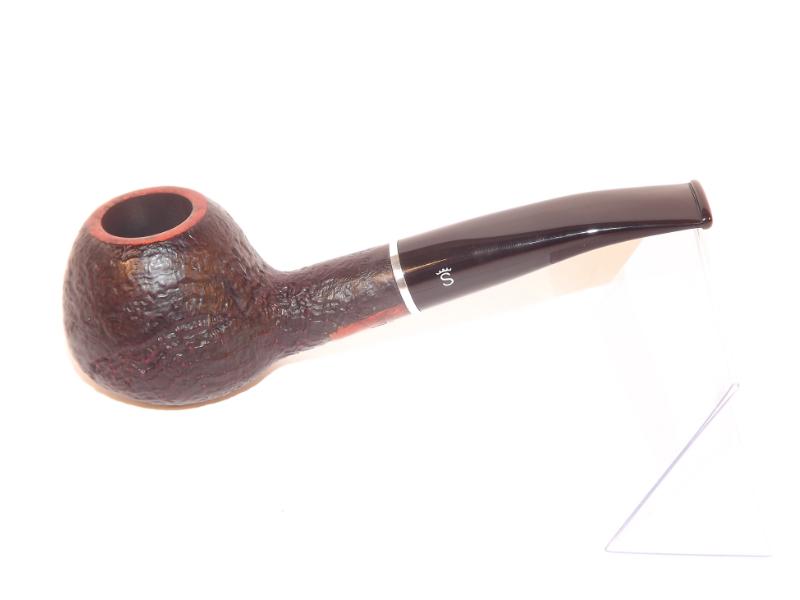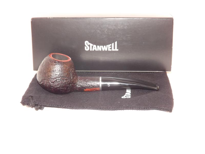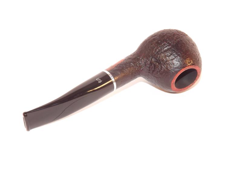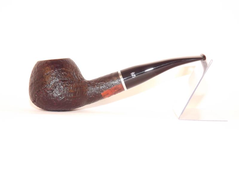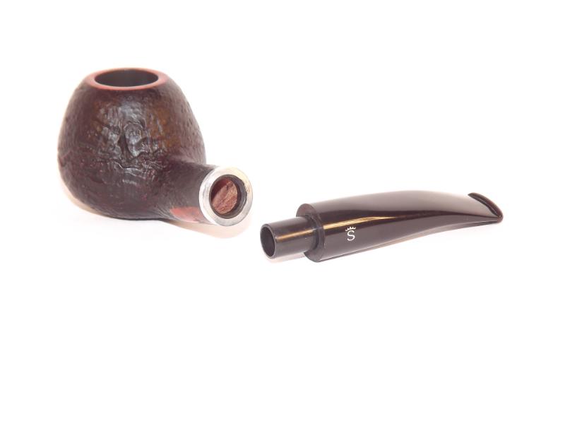 A Stanwell Relief 109 Black Sand pipa bruyerből készült homokfúvott fekete pipafej, 9mm-es filterrel, enyhén hajlított szárral, fekete acryl szopókával. A szárat egy fémgyűrű díszíti.